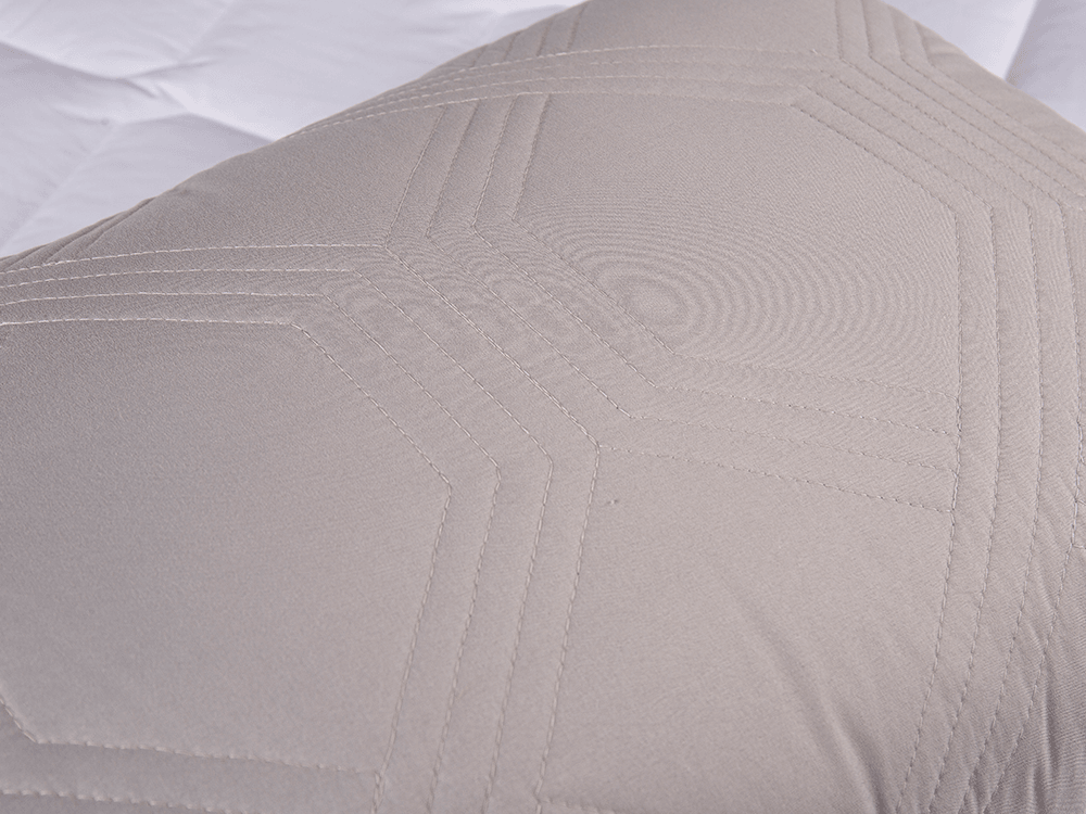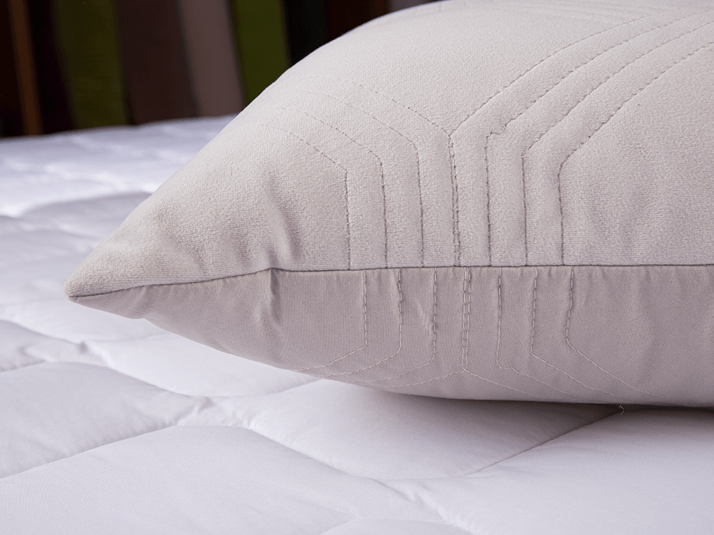 Gabungan kain beludru pendek dan kain yang disikat mencipta bantal yang bergaya. Kain beludru pendek lembut dan licin, dengan tekstur mewah. Corak selimut bergaya meningkatkan estetika keseluruhan bantal. Pengisian berbulu menjadikannya sempurna sebagai bantal, tetapi ia juga boleh digunakan sebagai kusyen.